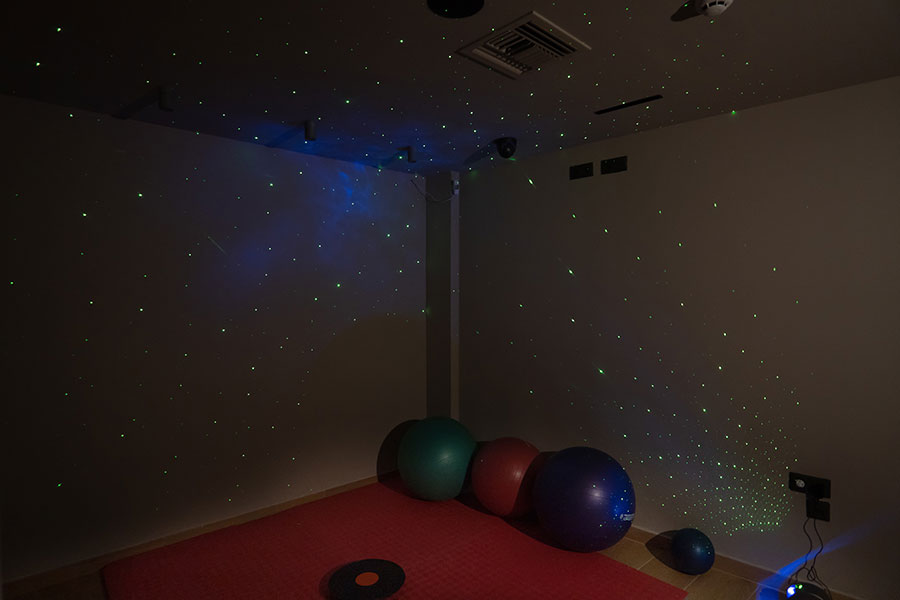 Οι άρτια εξοπλισμένες αίθουσες του κέντρου περιλαμβάνουν ποικιλία εργοθεραπευτικών εργαλείων όπως κούνιες, αιώρες, τοίχο αναρρίχησης, πολύζυγο, μπάλες, τα οποία αξιοποιούνται με στόχο την ανάπτυξη κινητικών, αισθητηριακών και κοινωνικών δεξιοτήτων.